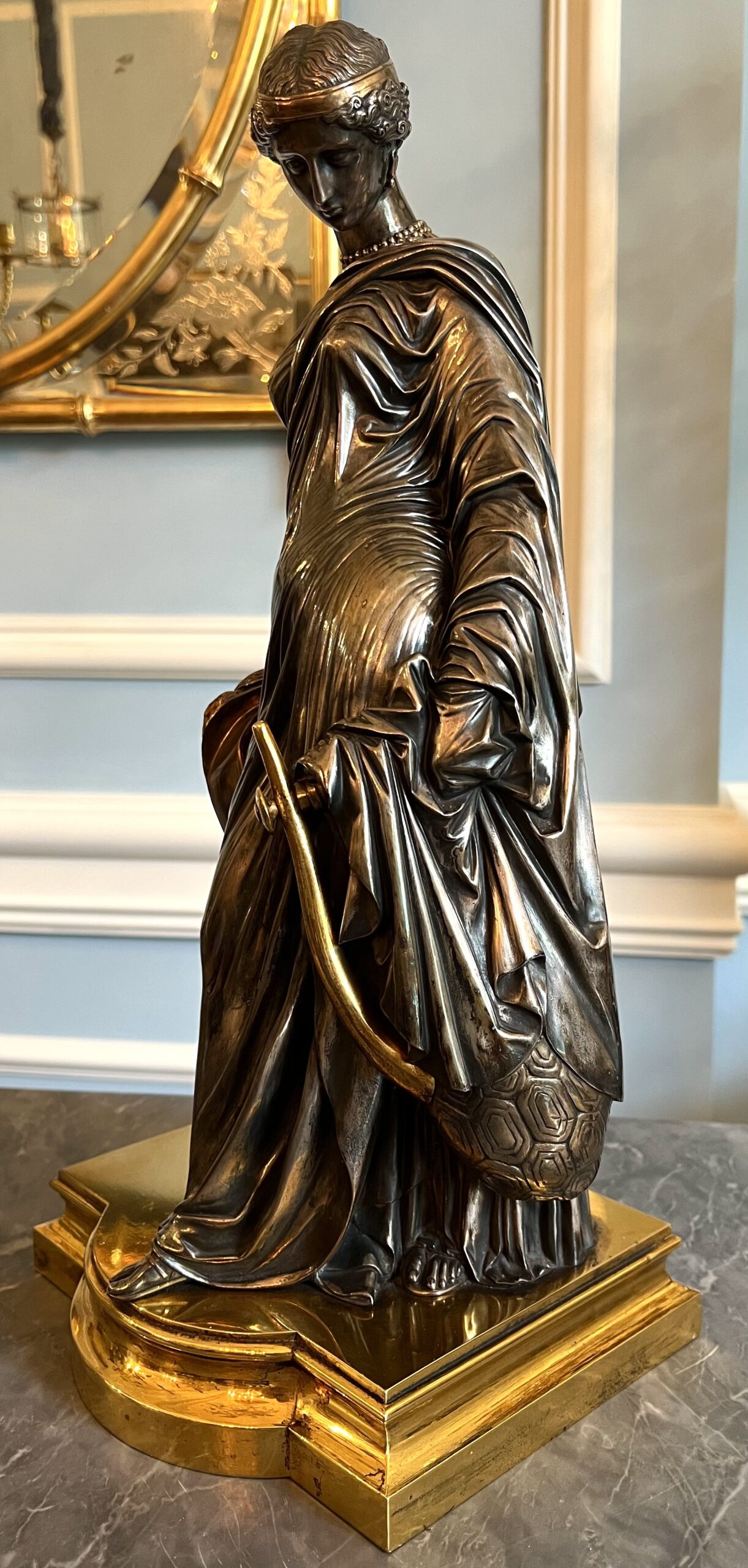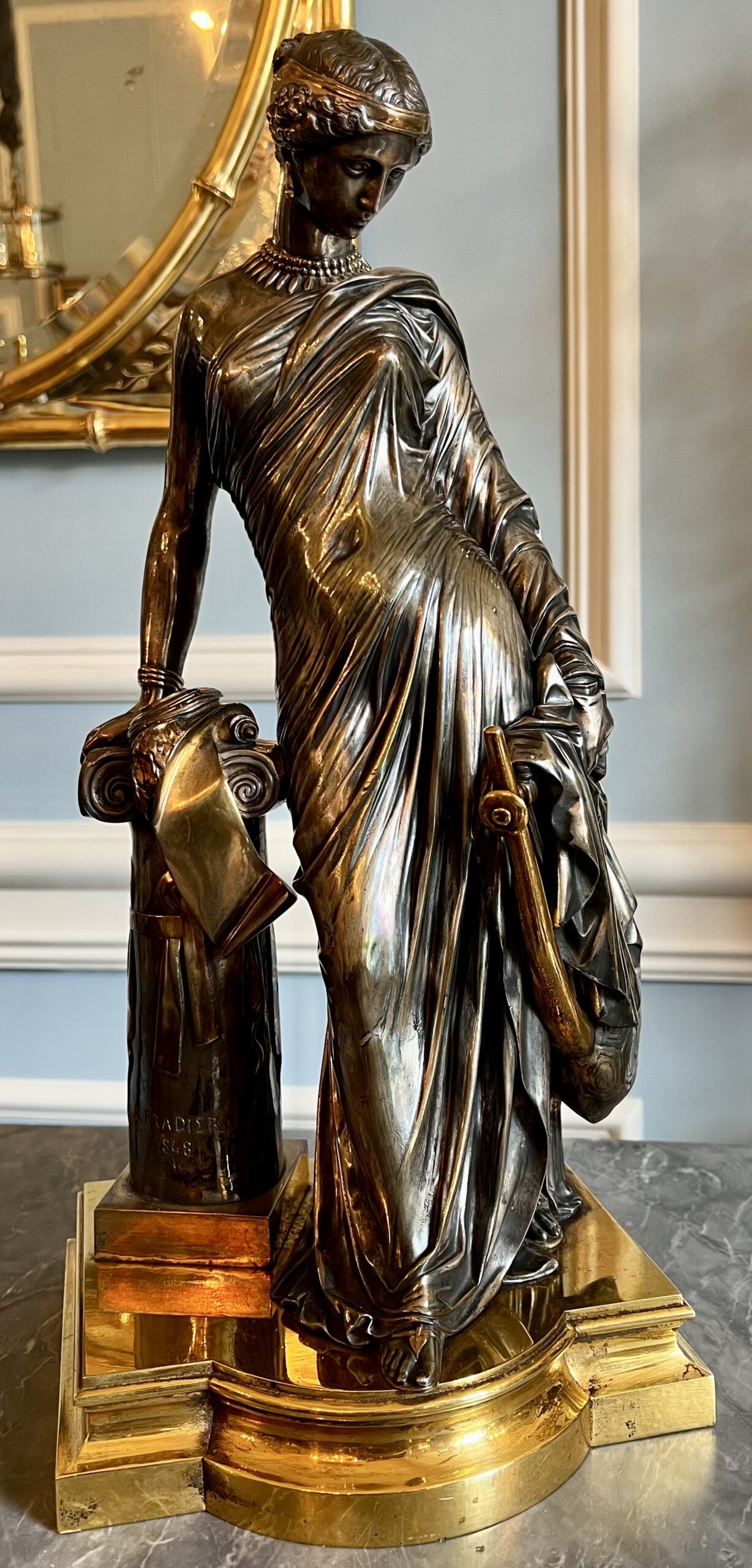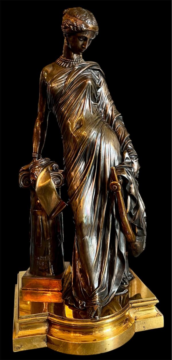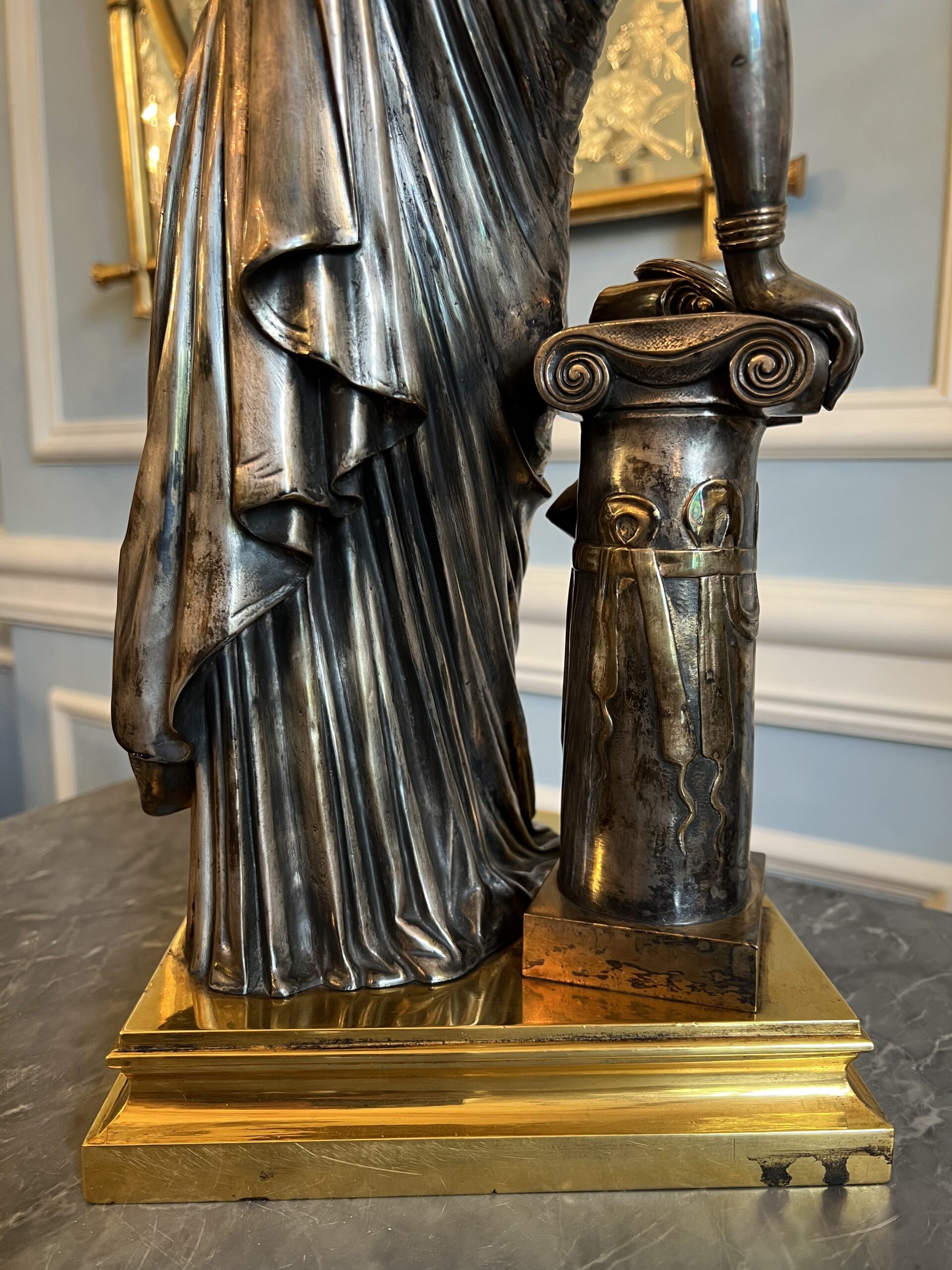 Sculpture in gilded and silvered bronze signed “J. Pradier” and dated “1848”. Bears the foundry stamp VP with crown for Victor Paillard. “Sappho at the Column” was first presented in 1848 at the Paris Salon.